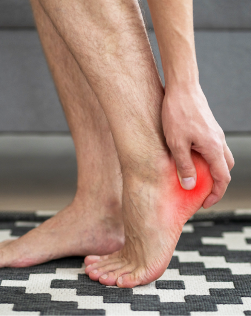 Heel pain with inflammation, limited standing endurance, and restricted mobility